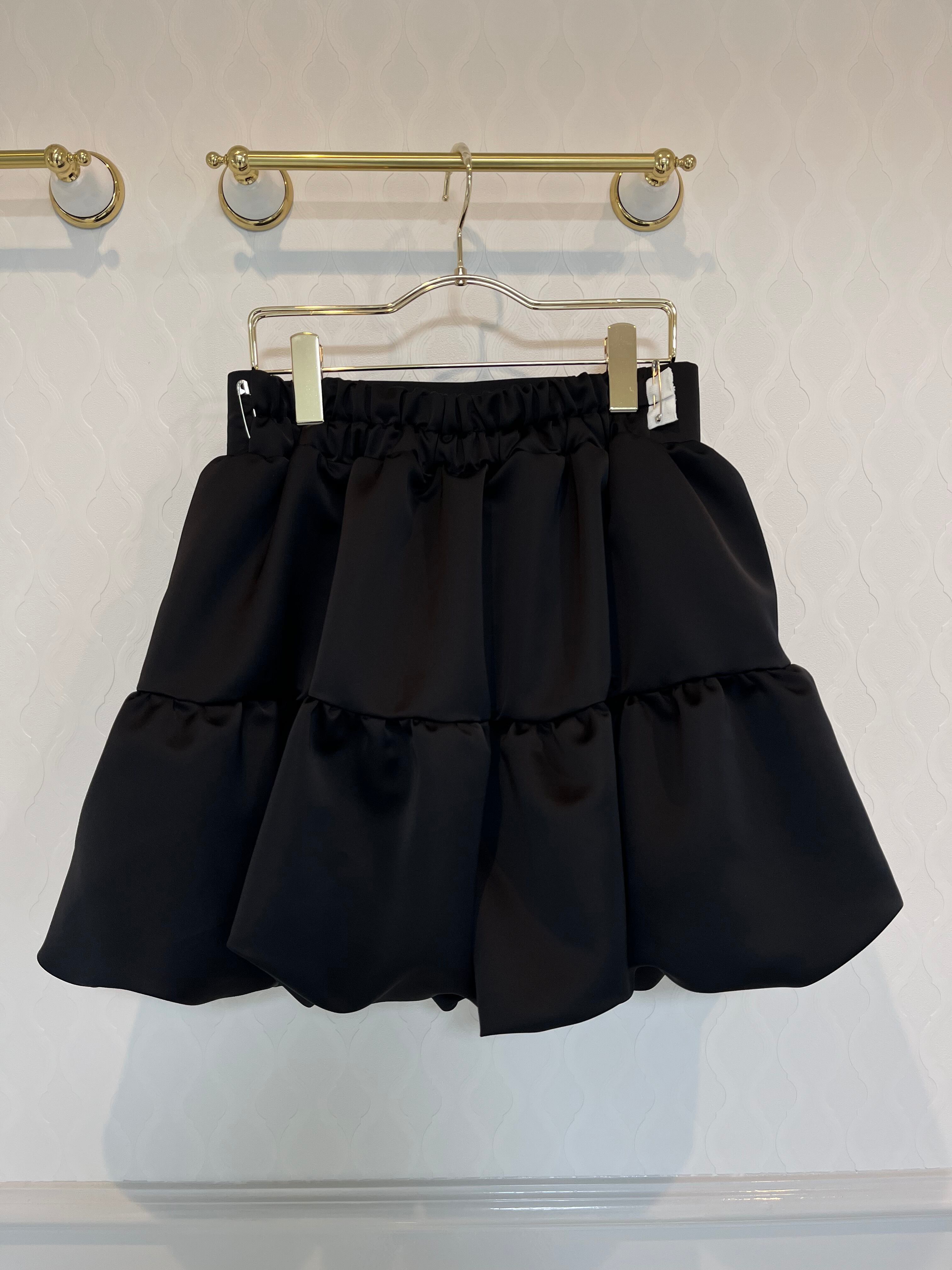 高級感のあるサテン生地にたっぷりのギャザーを寄せてふわふわのバルーンスカートに仕立てました。安心のインナーパンツ付です。