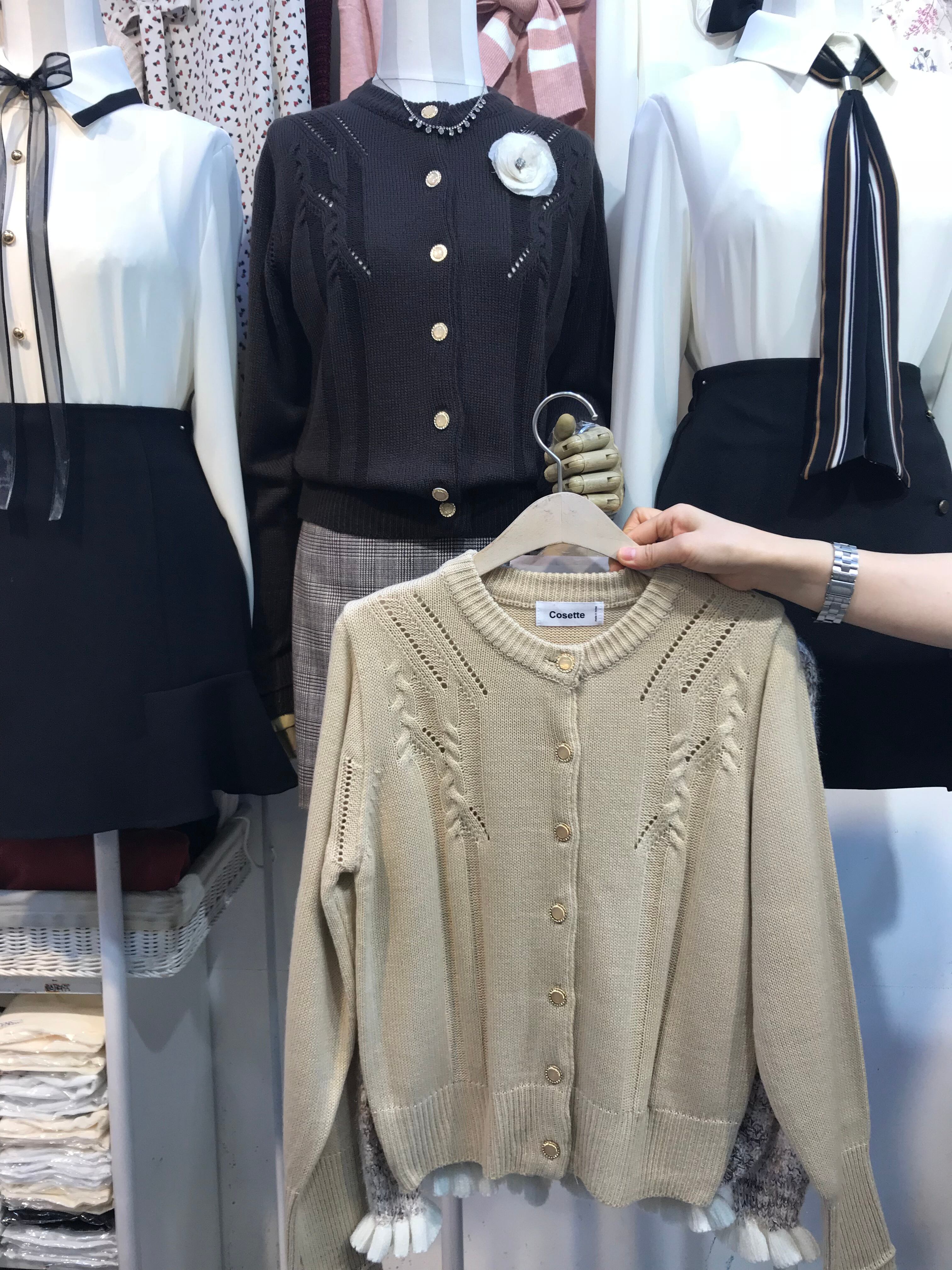 袖口の切り替えニットデザインや、ゴールドボタンの中にオーロララメが施されていたり、、、と細かなところまでディテールのこだわりを感じられる商品です♡