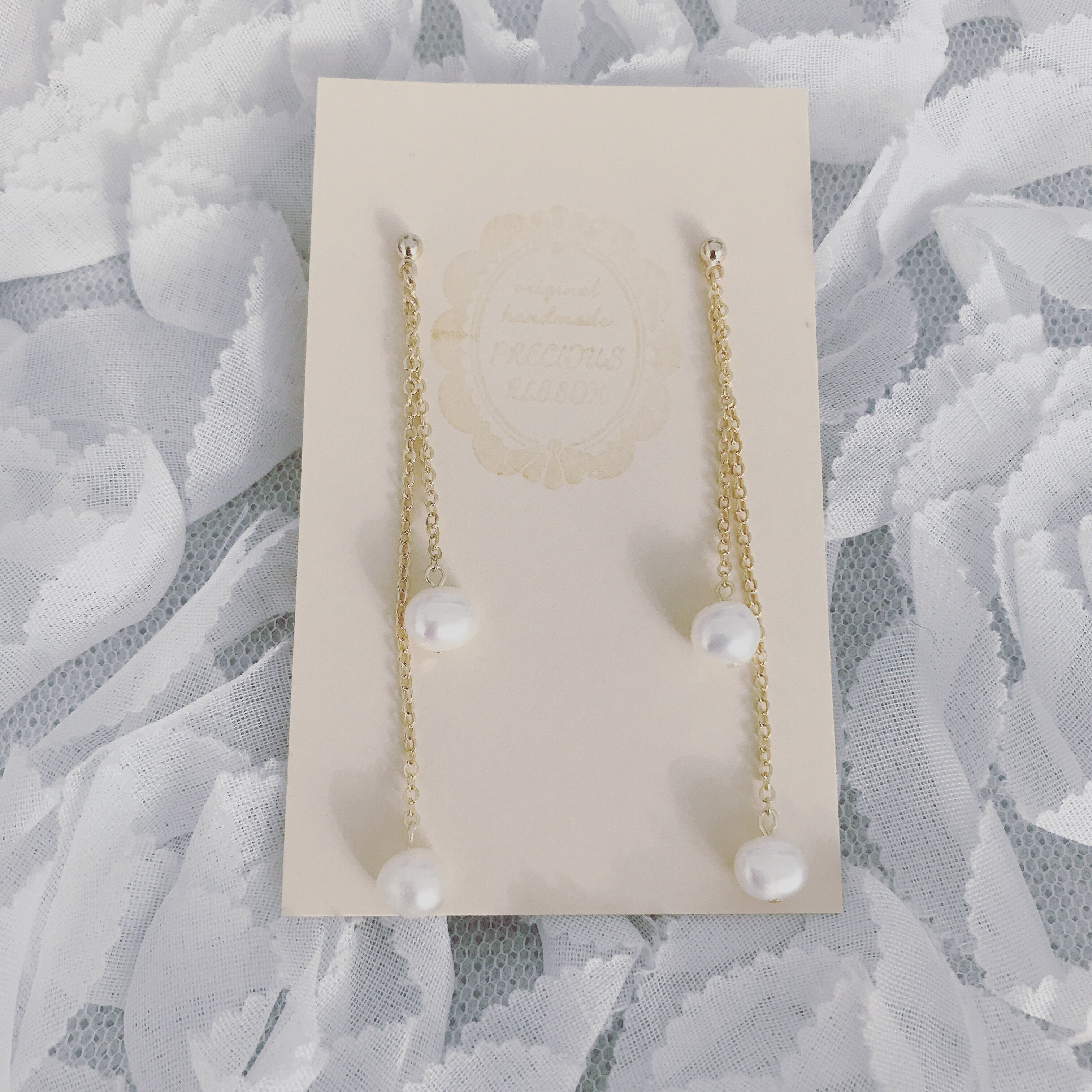 ✨淡水パール2粒ピアス✨淡水パールがゆらゆら揺れて女性らしさを演出してくれる大人女性の為のピアスです。粒がひとつひとつ違うので、オンリーワンアクセサリーです。