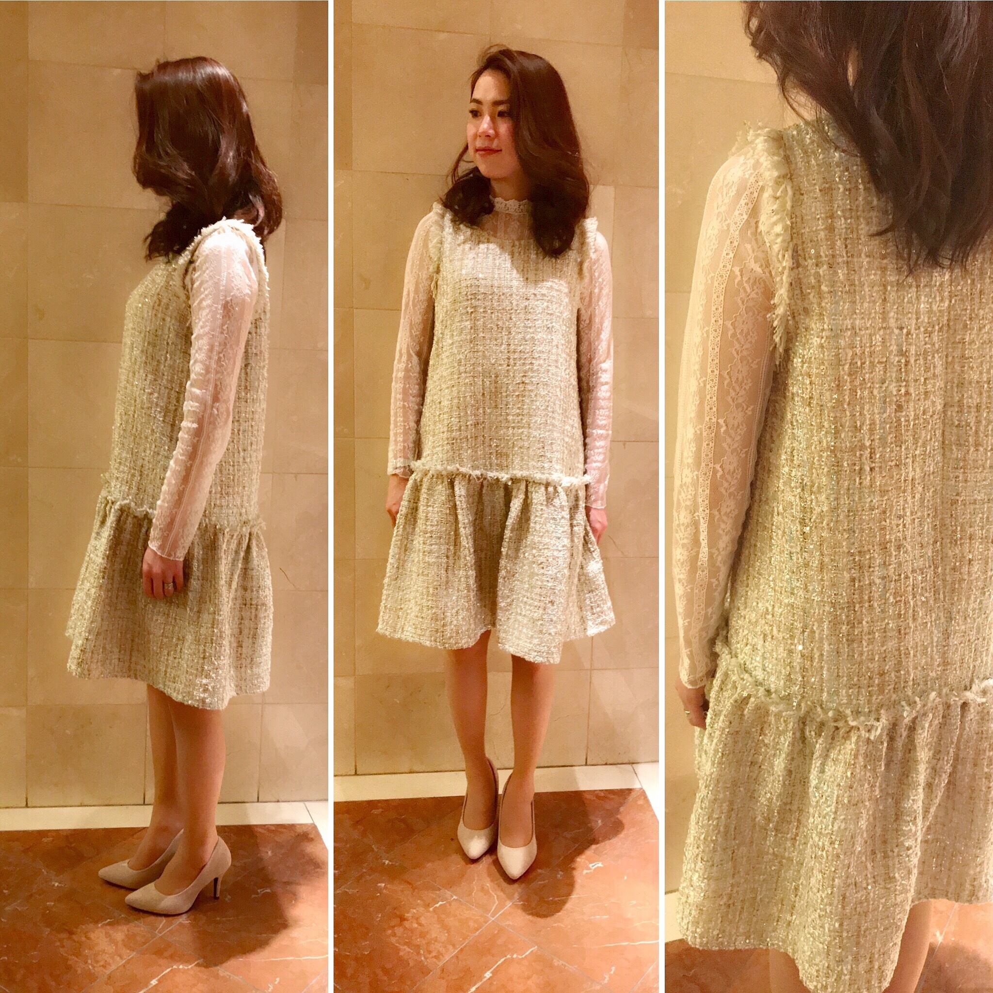 生地が凝っているものなのでローウエストスタイルで丈感も上品シンプルに仕上げました。お客様の大人可愛いを引き出してくれる一枚です。真夏を避ければ一年を通して長く着て頂けます(^^)